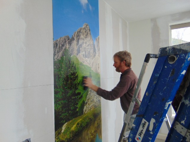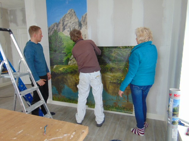 Fotobehang aanbrengen bij de familie J. den harthog.